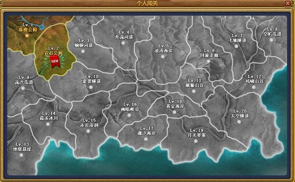 2、单人闯关分为20个等级的地图,可挑战地图等级只与玩家的头衔经验值有关,玩家的头衔等级越高,可挑战的地图等级越高。