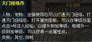 (3)交还任务,从百晓生处兑换天门经络丹: