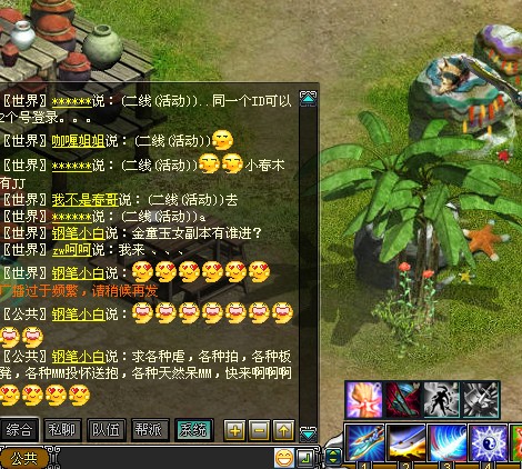 寂寞王子们在游戏里是闷骚惯了的,从不在世界喊话,要喊也是小号出面。但是在聊天喊话最引人注意,尤其身上有一般人得不到的物品时,一喊满世界的眼光就纷纷落在了你名字上,许多时候是MM哦,如此三番两次你想不出名都难。在《真武》中想出名也不光这种办法,各种榜前三也都是风云人物,MM们都很想叫高手带升级的,都很佩服高手的。但是这种成名太远太累,最快的成名方式,无疑就是在世办频道刷表白,刷各种昂贵物品卖等等,不过,要注意刷喇叭时的言语,MM玩家未必喜欢太嚣张的表白方式,因此,低调地刷喇叭表白,就是高技术含量的方式。